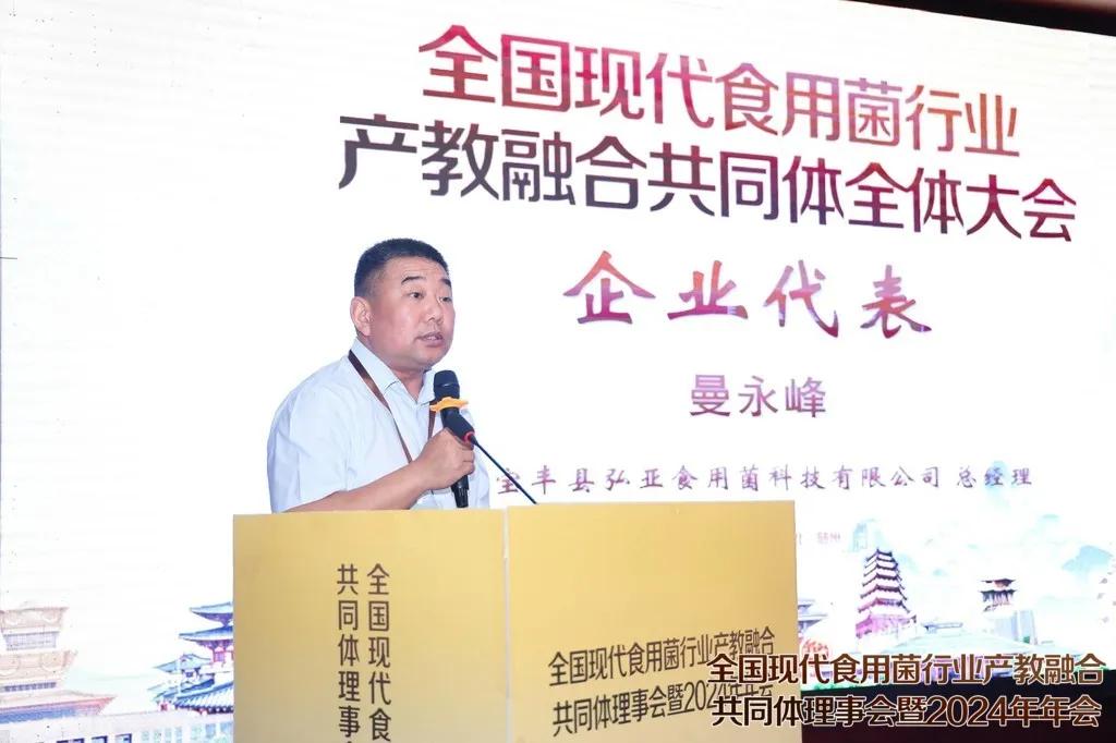 河南寶豐縣弘亞食用菌科技有限公司總經(jīng)理曼永峰作為企業(yè)代表發(fā)言,他指出食用菌行業(yè)當(dāng)下面臨著諸多的挑戰(zhàn)和機(jī)遇,共同體的成立正當(dāng)其時,此次被選為共同體的理事單位,既是認(rèn)可,也是激勵。他表示,公司將以此為契機(jī),加強與共同體各成員單位的交流合作,共同探索食用菌行業(yè)發(fā)展的新路徑、新模式。公司將充分發(fā)揮自身優(yōu)勢,積極分享經(jīng)驗成果,為共同體的建設(shè)和發(fā)展貢獻(xiàn)智慧和力量,為食用菌行業(yè)的繁榮發(fā)展作出更大的貢獻(xiàn)。