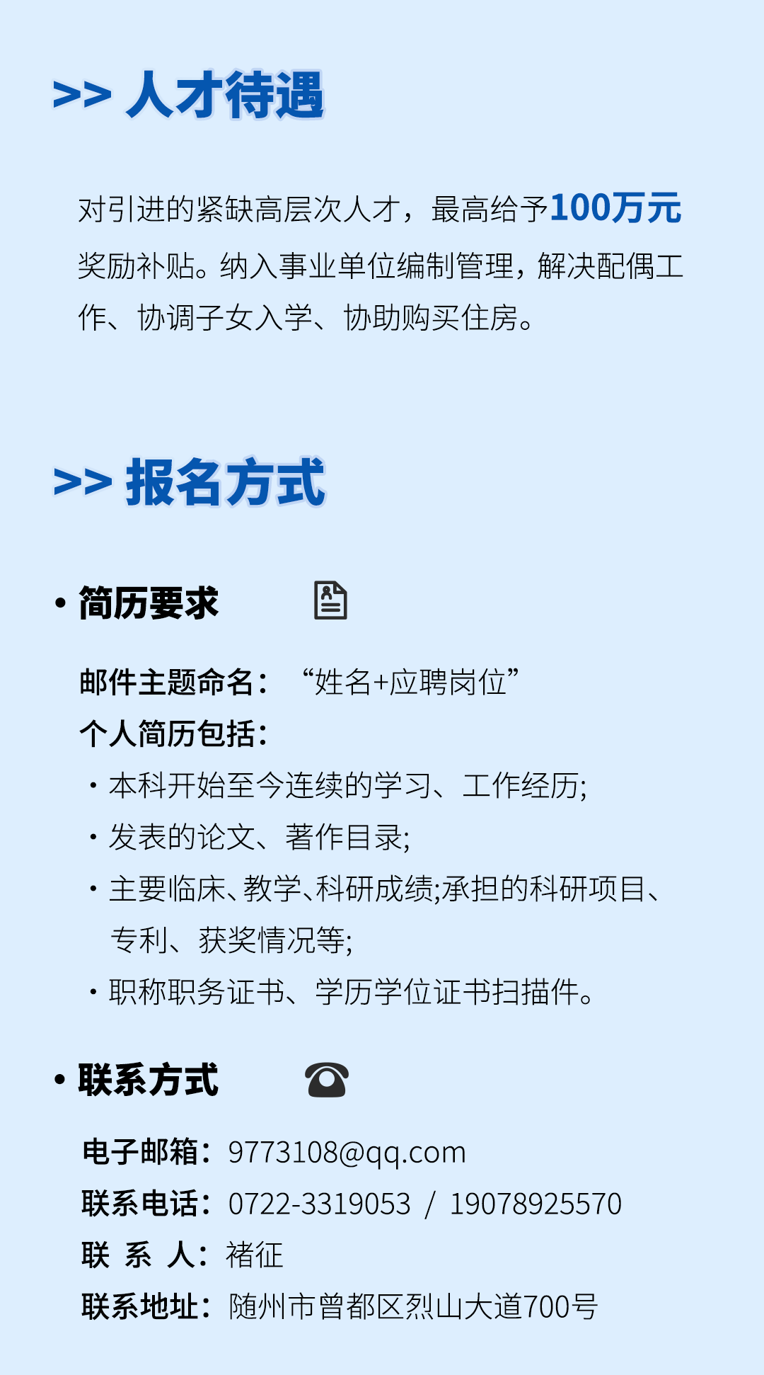 百萬(wàn)補(bǔ)貼 | | 隨州市曾都醫(yī)院拋出“真金白銀”招才引智 推進(jìn)醫(yī)療服務(wù)提質(zhì)增效