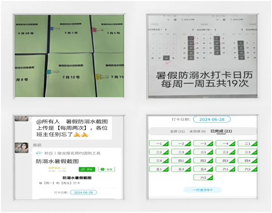 根據(jù)區(qū)教育局工作安排,每周要進(jìn)行兩次防溺水安全提醒。政教處利用小程序打卡功能對(duì)各班防溺水截圖進(jìn)行收集,打卡信息可以實(shí)時(shí)查看和統(tǒng)計(jì)。