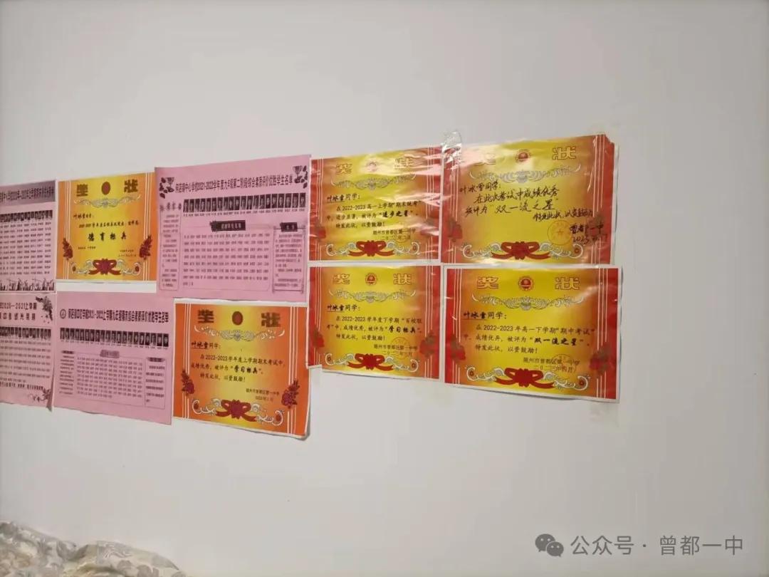 學(xué)校副校長(zhǎng)江鵬帶隊(duì)冒雨走訪高二(4)班某學(xué)生。在該同學(xué)家中,看到墻上貼滿了獎(jiǎng)狀,而學(xué)校頒發(fā)的獎(jiǎng)狀貼在最醒目的位置。