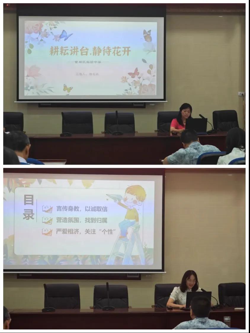 楊慶祝和楊瑞雪老師就“如何邁好實中第一步”作經(jīng)驗分享。楊慶祝老師認(rèn)為,教師應(yīng)該樹立良好的師風(fēng),以身作則,為學(xué)生樹立榜樣,用自己的實際行動去影響和感染學(xué)生。楊瑞雪老師分享,“教育是一場溫柔的堅持,也是一場向美而行的遇見。陳思思老師開展了主題為“如何邁好青春第一步”的經(jīng)驗分享。三位九年級班主任老師分享了各自獨到的經(jīng)驗。馬艷老師語重心長地告訴大家,“教育不是一蹴而就的事情,它需要耐心、細心和恒心。謝祎老師同樣深有感觸,作為班主任,要善于接近學(xué)生,體貼和關(guān)心學(xué)生,和他們進行親密的思想交流,讓他們真正感受到老師對他的親近和‘愛’。何奇奇老師滿懷熱愛:“誰說只有第一才是努力的全部意義,誰說倒數(shù)第一不值得被獎勵,只要不放棄,你就會有被好運光顧的權(quán)利。無論是第一還是倒數(shù)第一,都值得被偏愛!”