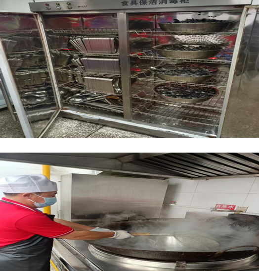 為了確保開學第一餐的飲食安全,食堂對餐具進行了嚴格的消殺。對碗筷進行蒸煮,并利用消毒柜進行消殺。確保同學們使用的餐具干凈、衛(wèi)生、安全。