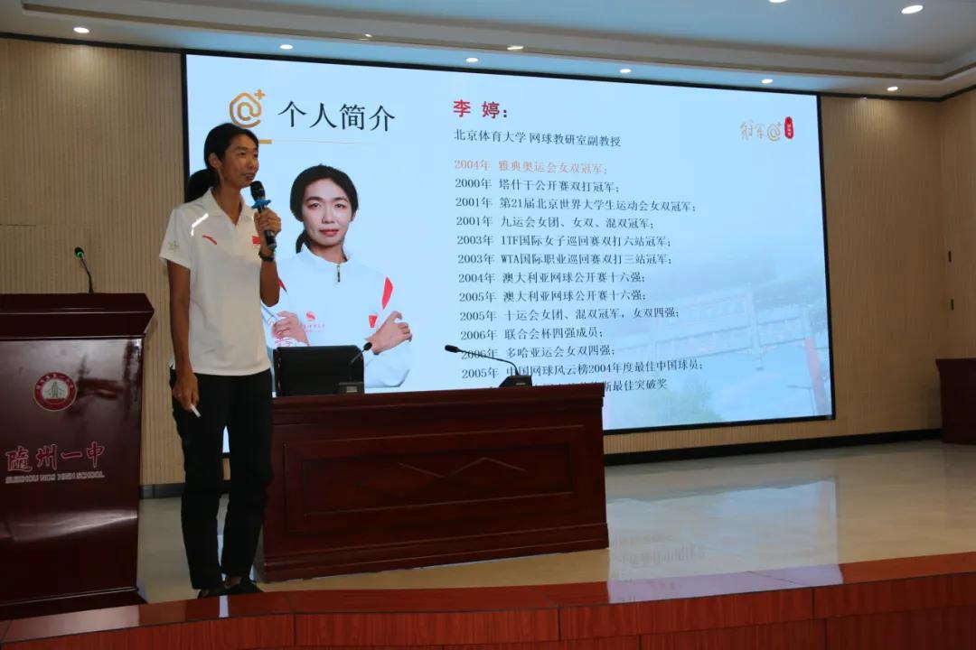 隨州新聞網(wǎng)訊 (通訊員魏友、黃文文、汪建鐵)8月29日下午,隨州一中舉行了奧運(yùn)冠軍暨知名學(xué)者進(jìn)校園活動(dòng)。2004年雅典奧運(yùn)冠軍、網(wǎng)球運(yùn)動(dòng)員李婷,北京大學(xué)周宏橋教授,迅游科技聯(lián)合創(chuàng)始人李宏陽等知名學(xué)者,共同為師生們帶來了一場別開生面的知識盛宴。該項(xiàng)活動(dòng)由隨州一中1997屆校友、北京大學(xué)國家發(fā)展研究院EMBA學(xué)員童昰道牽頭組織。