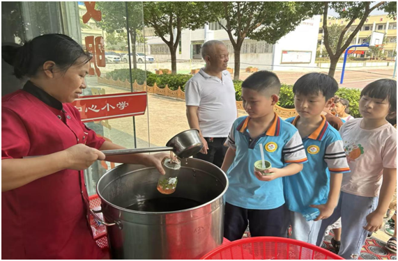 同學(xué)們在操場上揮灑汗水,學(xué)校也給大家安排了清涼解暑的綠豆湯,還有餐后脆甜的西瓜,可口的橘子。暖心陪伴,貼心關(guān)懷,呵護同學(xué)們成長。