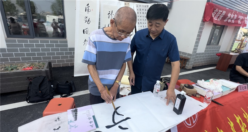 村民程榮鋒是書法愛好者,在書法展攤位前,曾都區(qū)書法主席鄒勇正手把手教他練字。程榮鋒寫起了“文明”二字,最后兩人還合影留了個紀(jì)念。鄒勇說:“我們書法協(xié)會經(jīng)常參加公益集市擺攤,免費教書法愛好者寫字,通過這種方式讓中國文化傳承發(fā)揚下去!