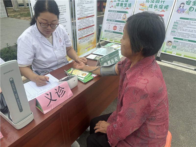 在廣場邊的文明實踐服務(wù)區(qū),愛心義診、書法展、婚俗改革宣傳等攤位一字排開,附近居民陸續(xù)來到廣場,看看有沒有自己需要的服務(wù)。村民黃成風(fēng)告訴記者說:“這幾天我經(jīng)常感到頭暈、胸口悶,一直沒有時間去醫(yī)院看看,恰好今天村里來了義診,就來咨詢一下,這個活動太好了!”