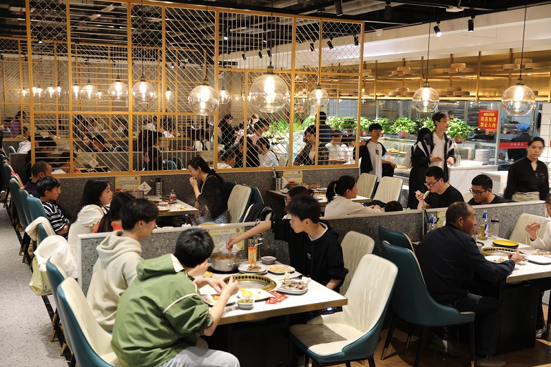 國慶假期,婚宴、壽宴、親友聚餐等是節(jié)日餐飲消費(fèi)熱點(diǎn),隨州餐飲市場持續(xù)推出消費(fèi)滿減、贈送特色菜品等活動,包席爆滿,包間一桌難求,餐飲消費(fèi)熱鬧紅火,人氣旺盛,我市各餐飲企業(yè)搶抓節(jié)日契機(jī),在活動內(nèi)容、菜品花樣、個性服務(wù)等方面升級提檔,推出家庭宴席、婚慶宴席、生日宴席等主題套餐飲食,各種特色農(nóng)家樂、中小餐館生意同樣異;鸨F渲须S廚院子結(jié)合百日宴、生日宴,專門在室外開展親子童趣游園活動,假期首日銷售額環(huán)比增長58%,其他各酒店也同步開展包席滿減活動,吸引顧客消費(fèi)。隨廚家宴、富儷華酒店、映像隨州餐廳等10家餐飲企業(yè)國慶前五天累計(jì)銷售231.7萬元,同比增長20.2%。