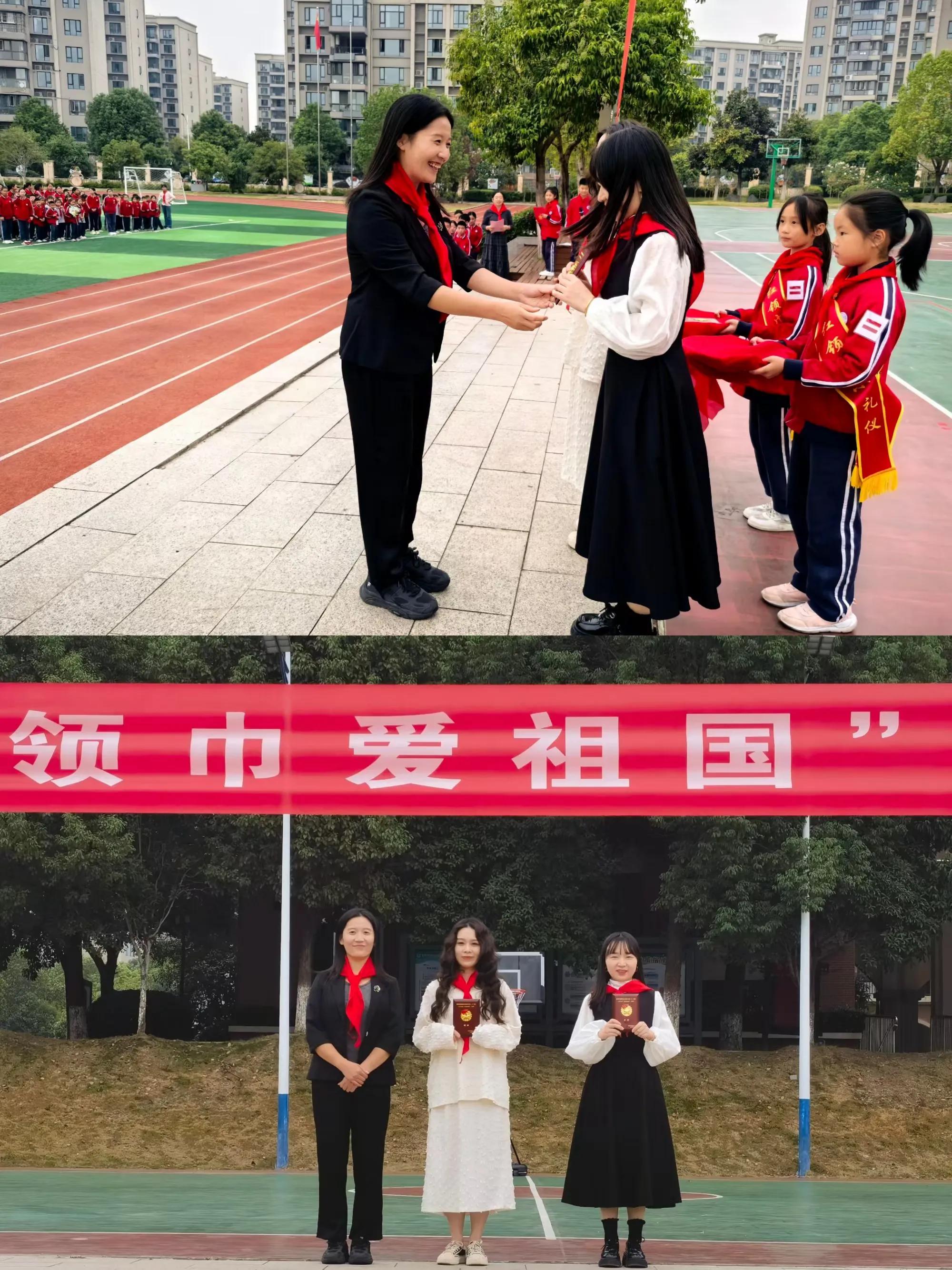 入隊(duì)是一次成長(zhǎng),亦是新征程的開(kāi)始。在大隊(duì)長(zhǎng)的帶領(lǐng)下,全體隊(duì)員舉起右手,莊嚴(yán)宣誓。星星火炬指方向,紅領(lǐng)巾獎(jiǎng)?wù)掳槌砷L(zhǎng)。隨后,大隊(duì)輔導(dǎo)員胡晶晶宣讀“紅領(lǐng)巾獎(jiǎng)?wù)隆鲍@章名單。少工委委員鄧婧同志頒發(fā)"紅領(lǐng)巾獎(jiǎng)?wù)?個(gè)人二星章。團(tuán)區(qū)委書(shū)記戴露頒發(fā)"紅領(lǐng)巾獎(jiǎng)?wù)?集體二星章。一枚枚星章既是肯定,又是激勵(lì),在少先隊(duì)員的胸前綻放出了耀眼的光芒,激勵(lì)他們繼續(xù)承載著光榮和夢(mèng)想,以實(shí)際行動(dòng)迎接未來(lái),為紅領(lǐng)巾增添新的光彩,努力成長(zhǎng)為堪當(dāng)強(qiáng)國(guó)建設(shè),民族復(fù)興大任的棟梁之材。