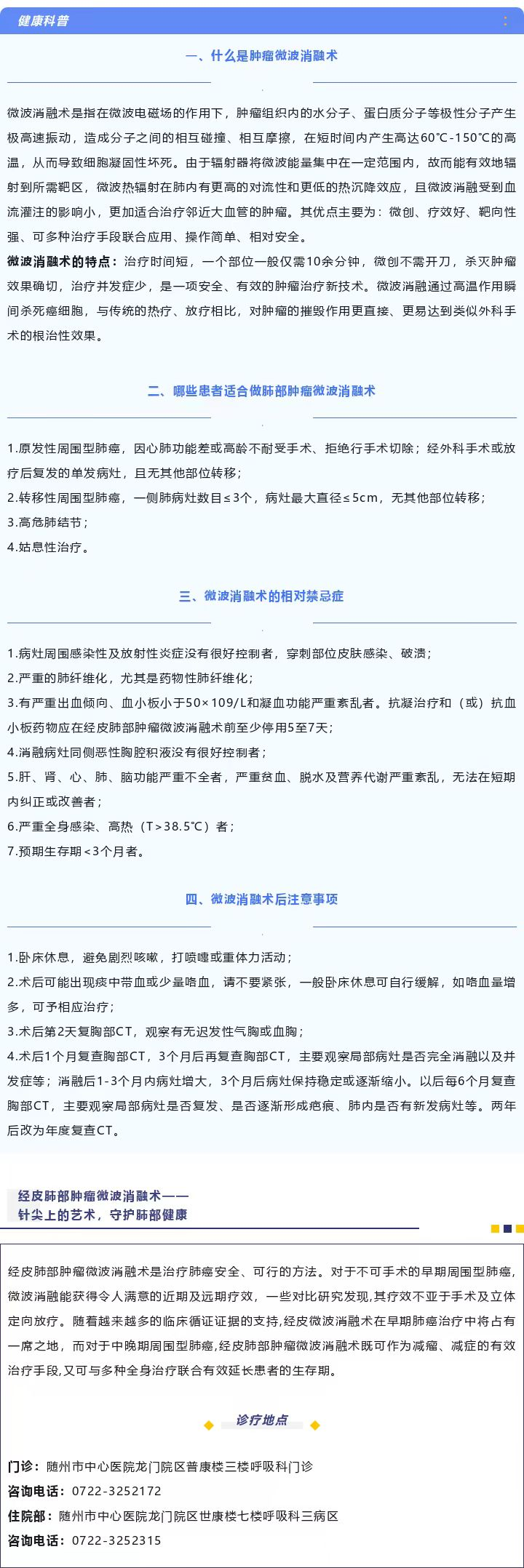 近日,隨州市中心醫(yī)院龍門院區(qū)呼吸與危重癥醫(yī)學(xué)科三病區(qū)成功開展2例CT引導(dǎo)下經(jīng)皮肺部腫瘤微波消融術(shù),此項(xiàng)手術(shù)的成功實(shí)施,標(biāo)志著隨州市中心醫(yī)院在肺癌微創(chuàng)介入治療方面取得突破性進(jìn)展,填補(bǔ)了隨州地區(qū)經(jīng)皮肺部微創(chuàng)介入治療的空白,將為更多的肺癌患者帶來福音。
