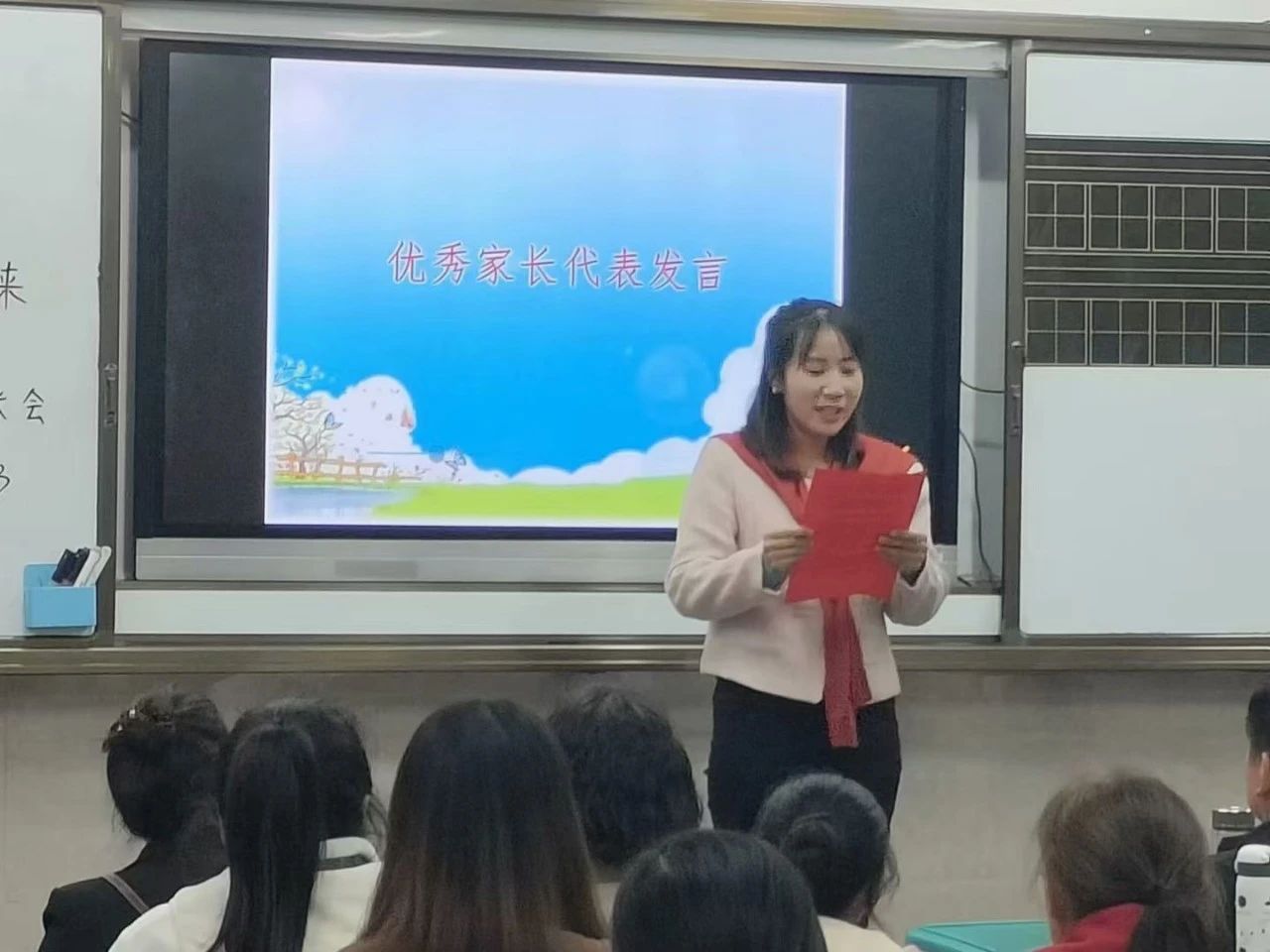 聲聲細語暖人心,一言一語總關(guān)情。會議伊始,學校德育副校長孫秀芬首先對家長們的到來表示熱烈歡迎。接著她以生動的語言,向家長們詳細介紹了學校的辦學理念、教師團隊;回顧了學校近期的教育教學情況,從學生綜合素質(zhì)培養(yǎng),再到校園文化建設(shè),每一項學校工作和成就都凝聚著全體師生的辛勤汗水與不懈努力。最后,孫校長寄語家長們,愿家校攜手,堅持全程參與,理念一致,目標一致,行動一致,共同為孩子們的成長撐起一片藍天,讓每個孩子都能在愛與智慧的光芒下綻放光彩。