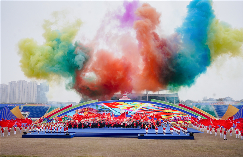秋高氣爽,濱湖體育場歡聲雷動,場內群眾以廣場舞、花鼓戲等表演笑迎八方賓朋。