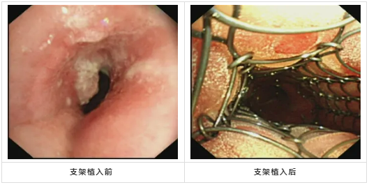 支架成功植入,患者呼吸困難立刻減輕。術(shù)后,患者自覺喘氣明顯減輕,無不適主訴。因該患者為惡性腫瘤患者,如不放置支架,患者反復(fù)喘息,生活質(zhì)量極差,且隨時會發(fā)生窒息死亡的可能,放置支架后可解除氣管狹窄帶來的呼吸困難,從而大大提高其生活質(zhì)量,減輕病痛。術(shù)后第二天晨查房,患者恢復(fù)良好,患者及家屬對治療效果非常滿意。
