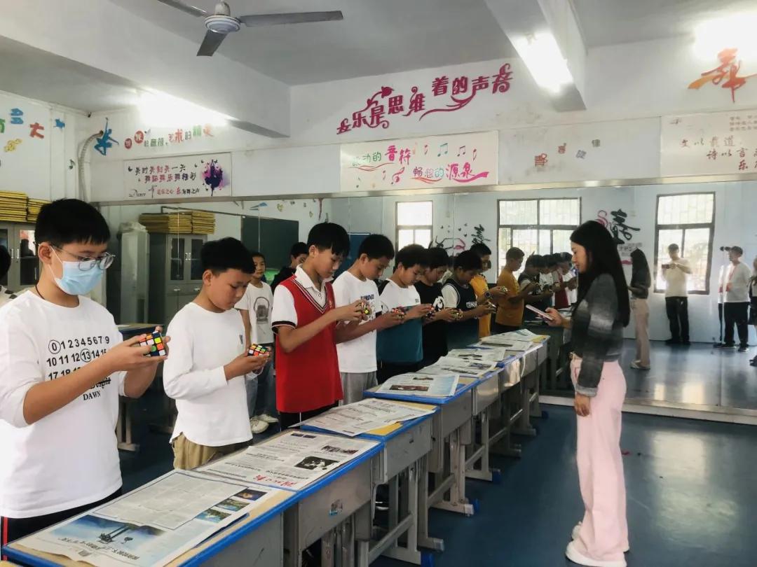 高年級(jí)的“三階魔方還原”比賽,將現(xiàn)場(chǎng)氣氛推向了高潮。小選手們手指飛舞,魔方在他們手中仿佛被賦予了生命,短短幾分鐘內(nèi),一個(gè)個(gè)雜亂無(wú)章的魔方便被還原成了整齊劃一的六面色塊。這場(chǎng)速度與智慧的較量,不僅鍛煉了同學(xué)們的思維能力,也讓他們?cè)谟螒蛑懈惺艿搅丝萍嫉镊攘Α?/div>