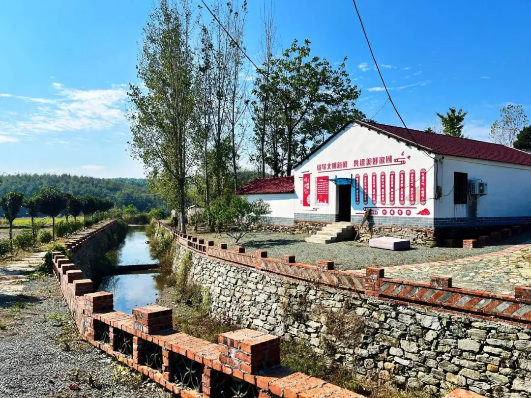 在萬店鎮(zhèn)的最東方,在漿溪店河畔,在先覺廟水庫邊,有一個(gè)美麗的移民村,這里天藍(lán)水清、綠樹蔥蘢,一棵參天柿樹守護(hù)著這方青山綠水,守望著這片幸福家園,這里就是——萬店鎮(zhèn)新東村!