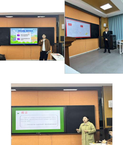 集體備課會上,結(jié)合各自深入學(xué)習(xí)領(lǐng)會黨的二十屆三中全會精神并融入思政課程的教學(xué)實踐,來自馬克思主義學(xué)院的三名教師代表——程景乾老師、陳林波老師、樊金星老師,先后以《洞悉大棋局 把握新形勢》《以新質(zhì)生產(chǎn)力推動高質(zhì)量發(fā)展》《書寫中國式現(xiàn)代化的青春答卷》為題作了教學(xué)展示。