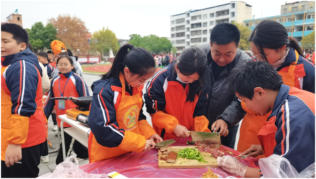 廚藝比拼環(huán)節(jié),學生們分年級分組進行烹飪比賽,展示了自己的烹飪技能。家長們也積極參與,與孩子們共同制作美食,現(xiàn)場氣氛熱烈,歡聲笑語不斷。