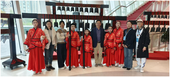 迎賓大廳,純凈悅耳的編鐘聲傳來(lái),余音裊裊。一曲由編鐘編磬合奏的《東方紅》噴薄而出,旋律悠揚(yáng),清脆洪亮,將渾厚莊重與深沉柔美完美地演繹出來(lái),與會(huì)嘉賓被美妙的音樂(lè)所吸引,更被小小演奏者精湛的技藝所震驚,紛紛駐足觀賞,陶醉其中,贊嘆聲不絕于耳。一曲終了,現(xiàn)場(chǎng)爆發(fā)出雷鳴般的掌聲,與會(huì)領(lǐng)導(dǎo)紛紛上前與小小演奏者合影。