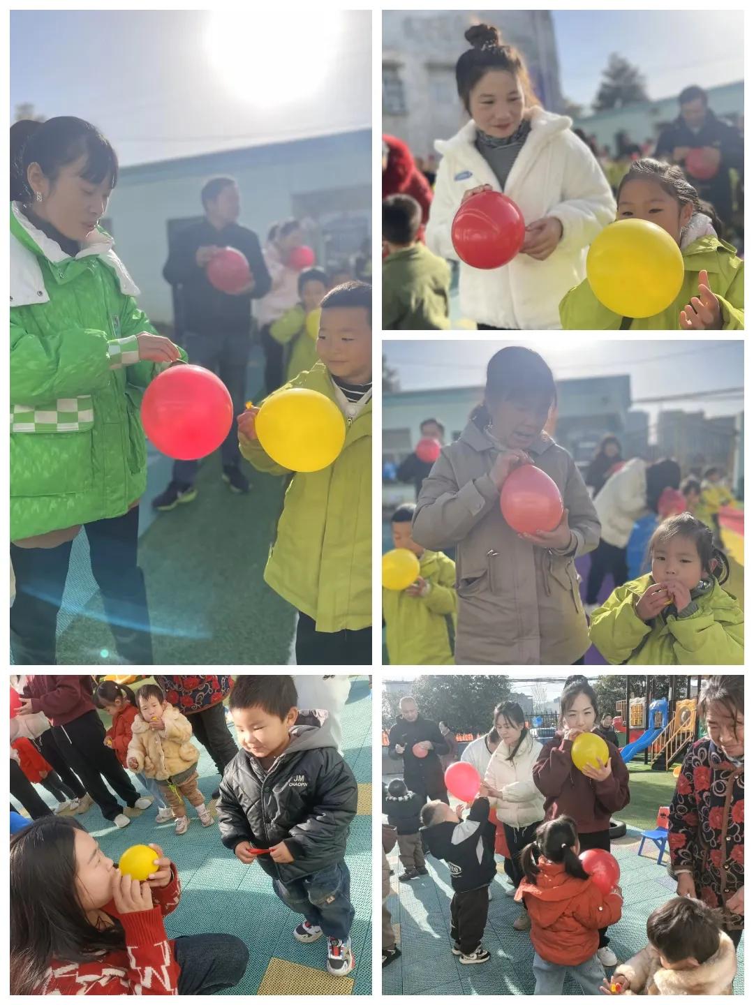 家長和幼兒比賽吹氣球咯,“爸爸、媽媽、奶奶,你看我吹的氣球大不大?” 我們一起開心的玩游戲啦!寶貝們來跳一跳長高高,爸爸媽媽爺爺奶奶(所有的家人)永遠(yuǎn)是為我們遮風(fēng)擋雨的人,我們在彩虹氣球下盡情歡笑!