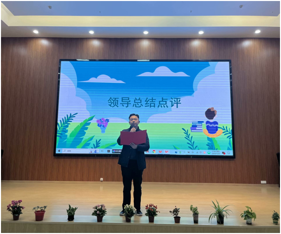 學(xué)校黨支部書(shū)記、校長(zhǎng)聶前進(jìn)對(duì)比賽進(jìn)行總結(jié)點(diǎn)評(píng)。他激勵(lì)大家切實(shí)遵守教師職業(yè)行為十項(xiàng)準(zhǔn)則的思想自覺(jué)和行動(dòng)自覺(jué),堅(jiān)守為黨育人、為國(guó)育才的初心,不斷涵養(yǎng)高尚師德,以德施教、以德育德,做黨和人民滿意的“四有”好老師。