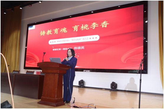 曾都一中陳雄英老師以《鑄教育魂,育桃李香》為題,從初心如虹、站穩(wěn)講臺,教書育人、春風(fēng)化雨,以人為本、做真教育,做好人師、任重道遠(yuǎn)等4個(gè)維度出發(fā),回顧了其在教學(xué)過程中的突破與轉(zhuǎn)變、在專業(yè)領(lǐng)域的深入探索以及在教育理念上的升華,并結(jié)合自身豐富的教學(xué)經(jīng)驗(yàn),深入闡述了對教育家精神的深刻理解與踐行成果。其發(fā)言引發(fā)了在場教師的強(qiáng)烈共鳴,贏得了陣陣掌聲。