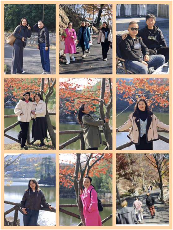一路歡歌,滿心喜悅。經(jīng)過兩個半小時的車程,抵達遠足地,大家稍作休整,就在導(dǎo)游的帶領(lǐng)下,沿著山路開始了徒步之旅。雖已入冬,但盤山公路旁的湖泊、三角紅楓、紅豆水杉等為料峭的寒冬增添了無盡的魅力。老師們被秀美的自然風(fēng)光深深吸引,或駐足欣賞,或拍照留念,歡聲笑語回蕩在山間小道。