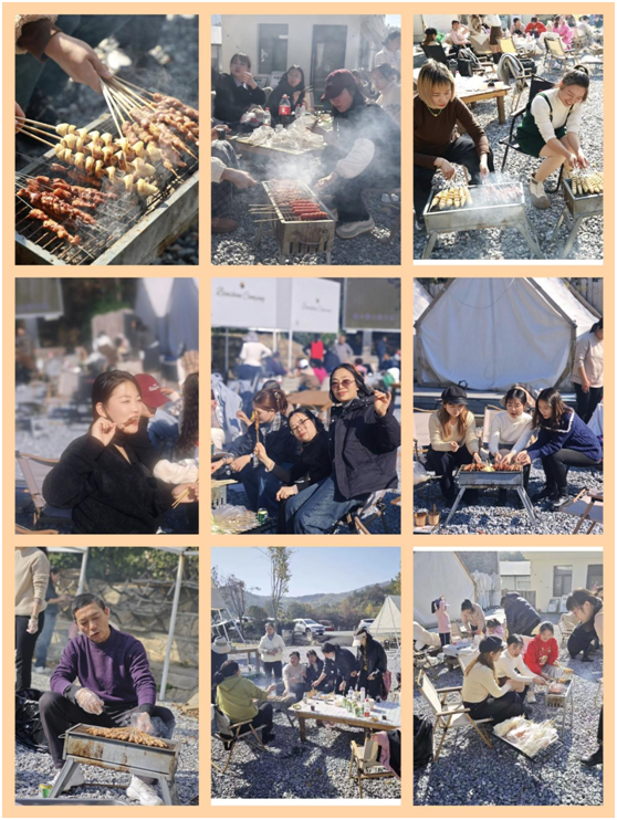 “人間煙火氣,最撫凡人心!蓖讲竭h行歸來,營地已經(jīng)準(zhǔn)備好了燒烤爐和食材,老師們自由組合,自助燒烤。煙熏火燎間,燒烤的香味彌漫營地,老師們互相走動,你品嘗我烤的,我吃吃你烤的,再比一比誰烤的味道更好一些,互相交流燒烤技巧,歡聲笑語間,往日工作的疲勞煙消云散,忙于工作來不及說的知心話,此時有了傾訴的空間。整個場面和諧快樂,讓會唱歌的老師忍不住高歌助興。