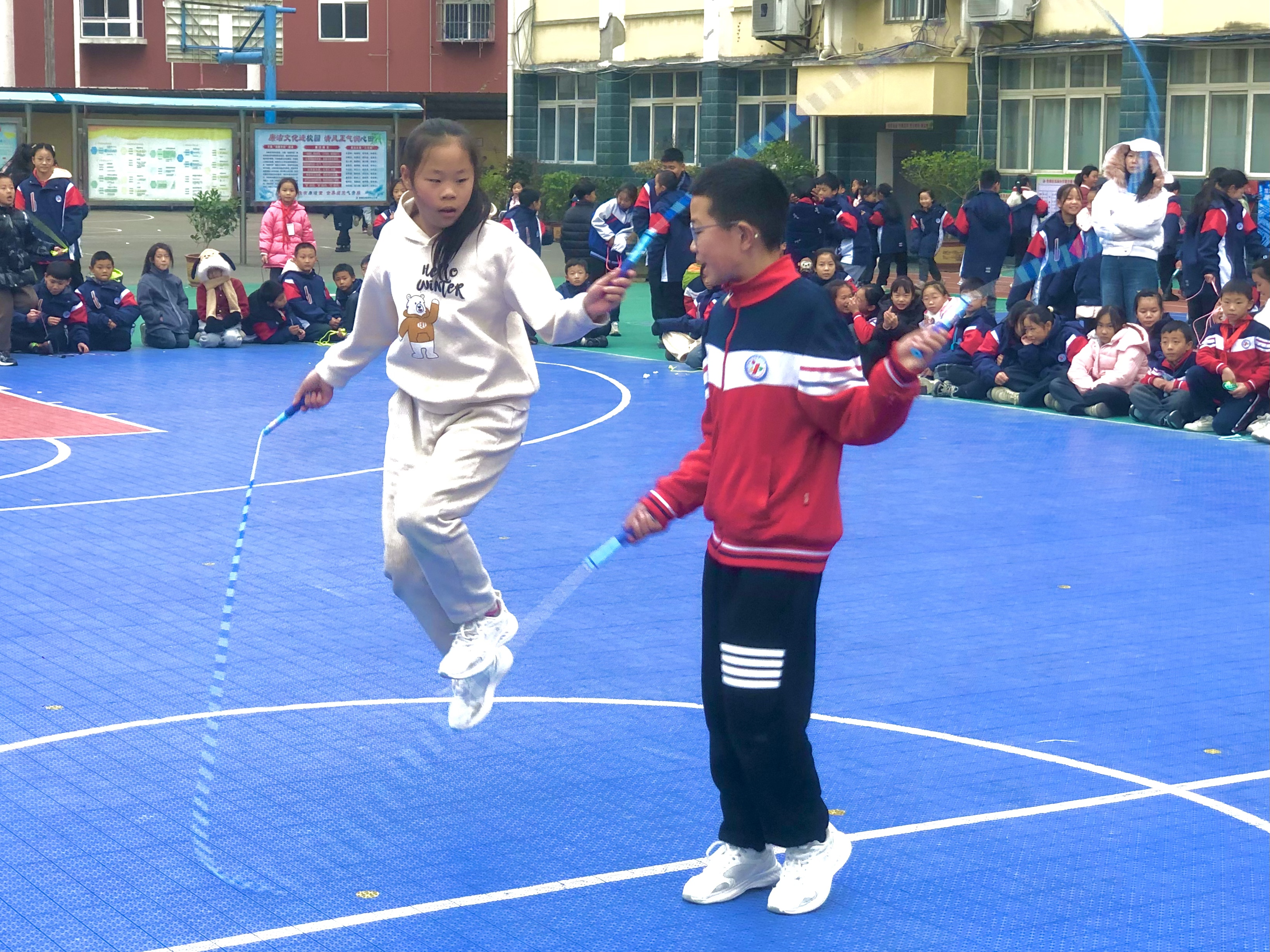 一根根小小的跳繩,連接著團(tuán)結(jié)與友愛,傳遞著勇氣與力量。運(yùn)動(dòng)員們輕盈地跳躍,繩子在空中劃出一道道優(yōu)美的弧線。觀眾席上,加油聲、喝彩聲此起彼伏,形成了一首美妙的交響曲。此次專項(xiàng)運(yùn)動(dòng)會(huì)不僅鍛煉了學(xué)生的體魄,還增強(qiáng)了班級(jí)的凝聚力,充分展現(xiàn)了瓜園小學(xué)積極向上的精神風(fēng)貌。