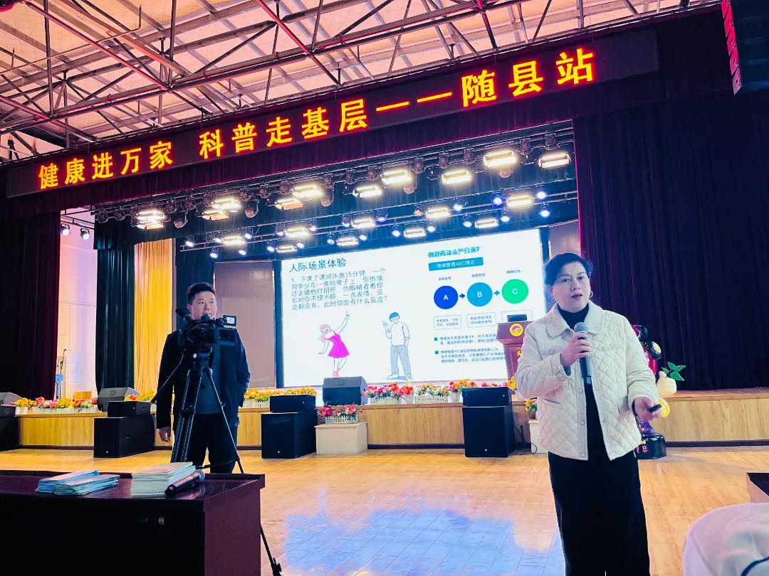 隨州新聞網(wǎng)訊 (通訊員 熊冬黎 劉穎)為進(jìn)一步普及心理健康知識(shí),提高學(xué)生心理健康意識(shí),培養(yǎng)積極健康的心理素質(zhì),引導(dǎo)學(xué)生正確調(diào)整青春期心理狀態(tài),12月10日,由湖北省衛(wèi)健委指導(dǎo)、湖北省疾控中心主辦、隨縣疾控中心承辦的“健康進(jìn)萬(wàn)家 科普走基層”健康巡講活動(dòng)在隨縣炎帝學(xué)校舉行。省疾病預(yù)防控制中心、縣疾病預(yù)防控制中心及炎帝學(xué)校相關(guān)負(fù)責(zé)同志出席活動(dòng),炎帝學(xué)校七、八年級(jí)師生800余人參加。