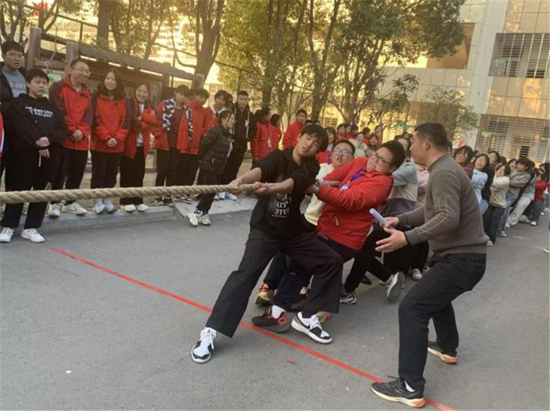 日腳淡光紅灑灑,薄霜不銷桂枝下。開幕式后,各項比賽正式拉開帷幕。百鳥歸巢、齊心協(xié)力、過山車等各個趣味項目次第展開,運動員們無懼嚴寒,勇往直前,他們的身影在陽光下閃耀,汗水浸濕了衣衫,卻澆不滅心中的斗志。同學們的加油聲、歡呼聲驅(qū)散冬日寒氣,讓校園彌漫著滾燙的赤子之熱,整個校園都沉浸在一片熾熱的氛圍之中。