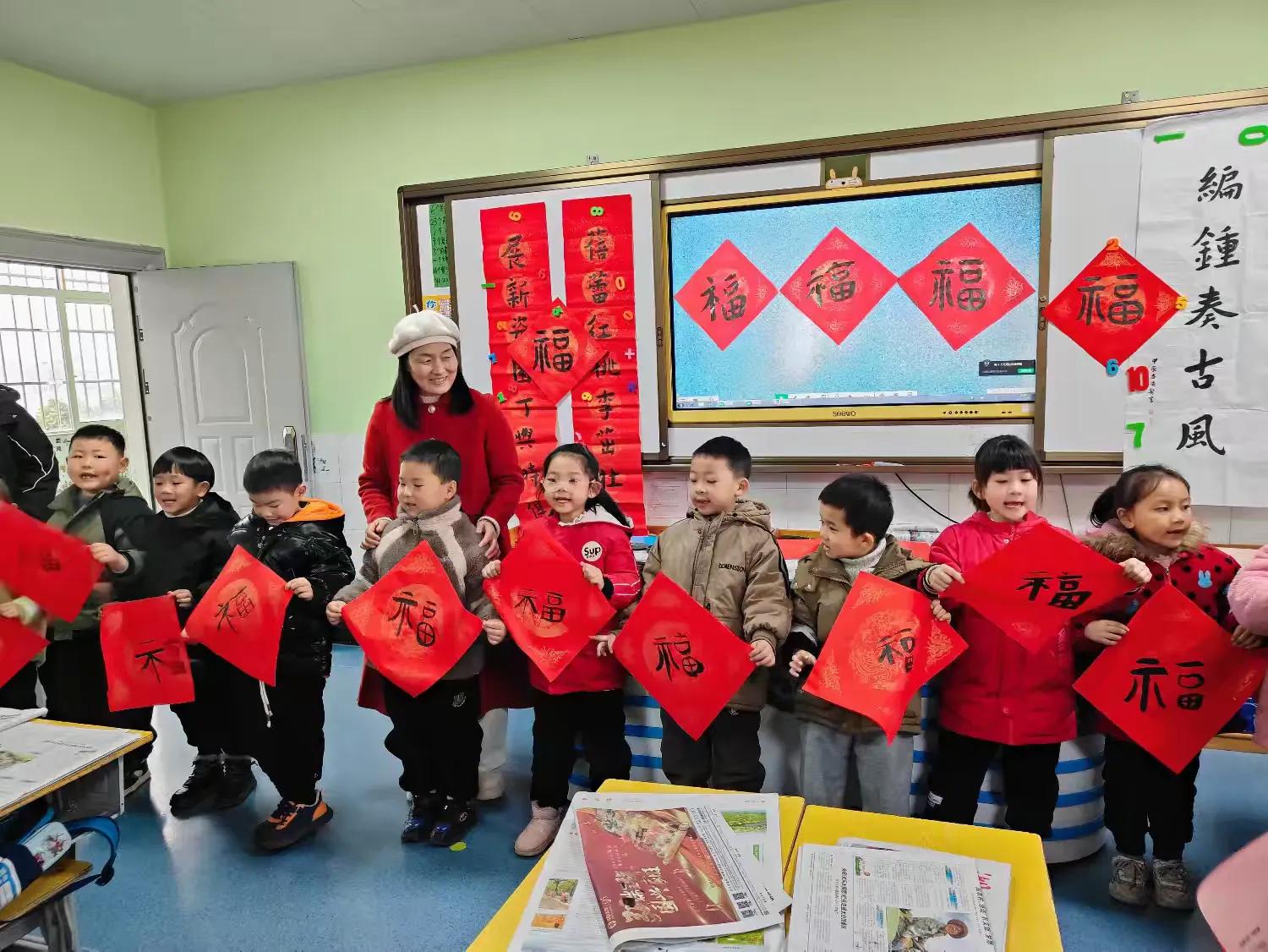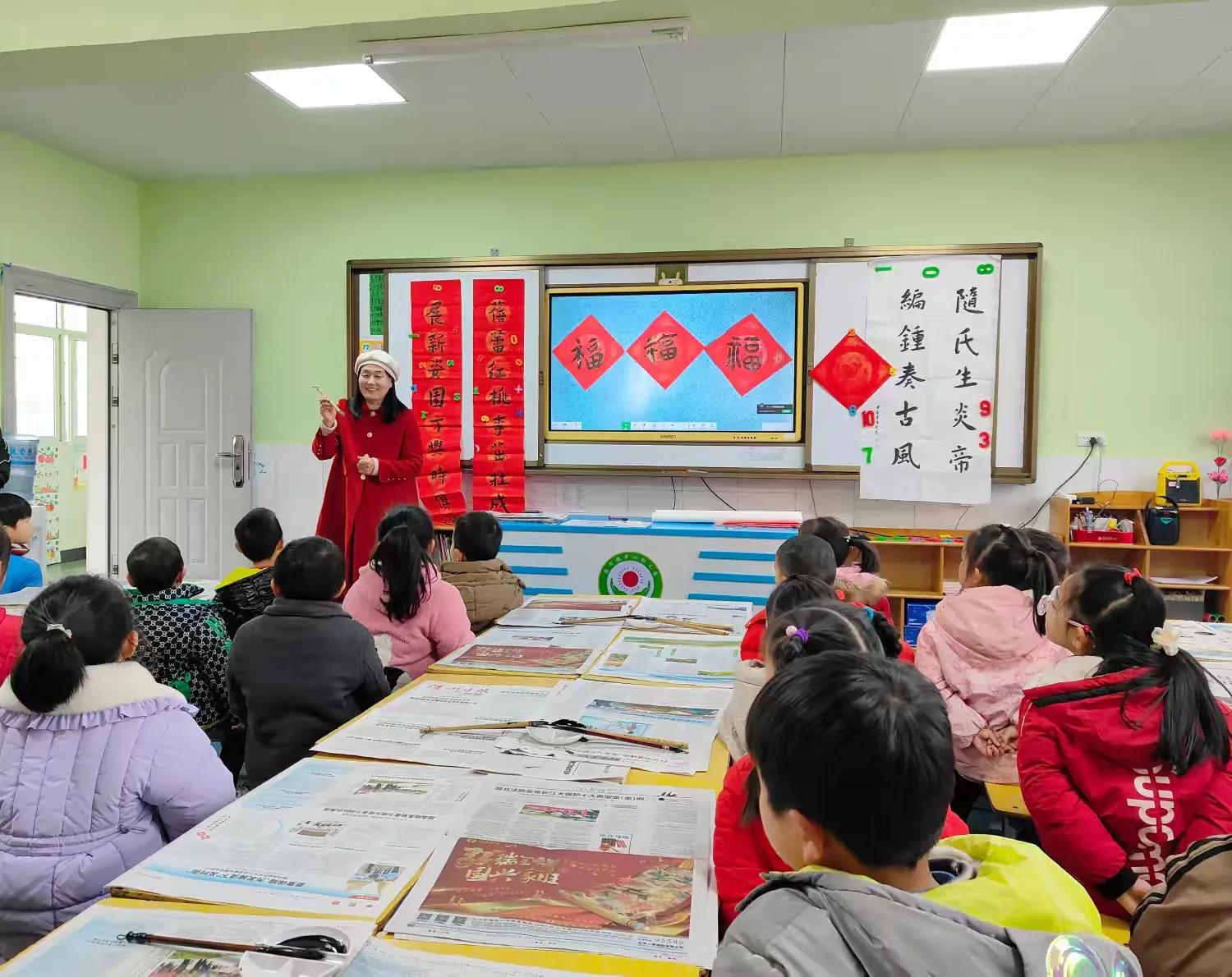 園長朱凌飛為府河鎮(zhèn)中心幼兒園的小朋友帶來了一節(jié)大班書法體驗活動《新年送“!薄。書法是中國傳統(tǒng)文化的精髓,是中華民族獨特的文化表現(xiàn)形式。在幼兒園階段,孩子們對世界充滿好奇,對各種新鮮事物都充滿探索的欲望,書法活動正是結合了孩子們的這一特點。在活動中,朱園長教孩子們認識了文房四寶:筆墨紙硯,欣賞了“福”字的楷書、隸書、篆書不同的寫法,讓孩子們體驗毛筆在報紙和斗方上書寫的奇妙感覺。孩子們經過幾次練習,終于寫出了一個個不同凡響的“!弊,并學會許多新年祝福的詞語。這節(jié)書法體驗課,孩子們在感受傳統(tǒng)文化魅力的同時,也親身體驗了書法的藝術之美、中華的文字之美。