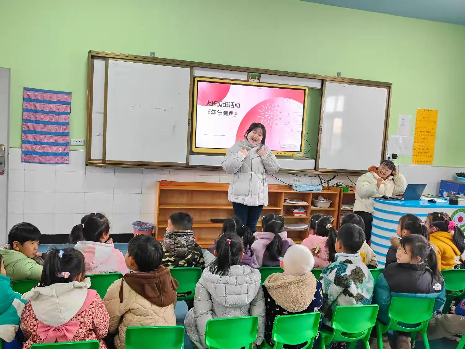 曹夢嬌老師為府河鎮(zhèn)中心幼兒園的小朋友們帶來了一節(jié)大班剪紙活動《年年有魚》。一張小小的紙,對孩子們來說也有著不小的挑戰(zhàn)。曹老師通過圖片和視頻展示的方法,讓孩子們了解到紙上畫出小魚的外輪廓和魚骨位置的方法,在活動中,孩子們感受到了剪紙藝術的獨特魅力,體驗到了藝術創(chuàng)造所帶來的樂趣和成就感。