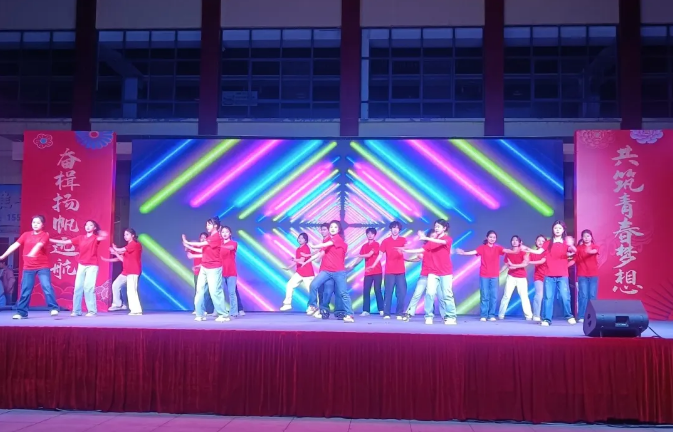 文藝匯演正式開始,歌曲舞蹈、朗誦小品、器樂表演等多種表演形式悉數(shù)登場。舞蹈《愛樂之城》《APT》《燕無歇》《蘭亭序》等以優(yōu)雅曼妙的舞姿,帶來一場視覺與心靈的雙重盛宴;《小美滿》《無名的人》等曲目如同天籟之音,穿透夜空,直擊我們的靈魂,唱出新時代青年的熱血、無畏和風采;詩朗誦《寫給未來的你》滿懷著對過去的深深懷念,喚醒了我們內(nèi)心深處的夢想與追求;小品《白雪公主和七個大高個》《如假不包換》的創(chuàng)意造型和精彩表演更讓現(xiàn)場歡樂雷動,笑語聲聲;學生家長代表帶來的歌曲《云在飛》歌聲高亢滿含深情,余音繞梁,不絕如縷;14名青年教師帶來的《歌曲串燒》以動聽的歌聲向同學們展示了嚴師另一面青春靚麗的形象;校樂隊彈唱《光輝歲月》,吉他弦音輕啟,如清風拂過時光書頁,主唱嗓音澄澈,承載著對往昔奮斗歲月的深情回望。