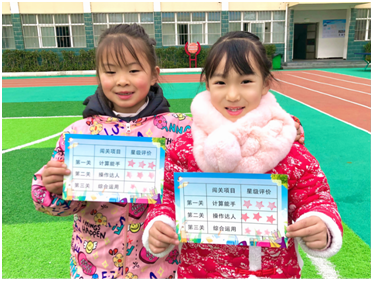 本次測評(píng)以趣味性闖關(guān)游戲代替?zhèn)鹘y(tǒng)紙筆考試。在“識(shí)字能手”“背誦達(dá)人”“妙語連珠”的語文關(guān)卡中,孩子們聲情并茂地朗讀、背誦,展現(xiàn)扎實(shí)的語言功底;“計(jì)算能手”“操作達(dá)人”“綜合運(yùn)用”的數(shù)學(xué)關(guān)卡,考驗(yàn)了孩子們的運(yùn)算能力和空間思維;孩子們憑借生活常識(shí)和實(shí)踐能力,自信應(yīng)對(duì)各類挑戰(zhàn),不少孩子都獲得了三星的最高榮耀!