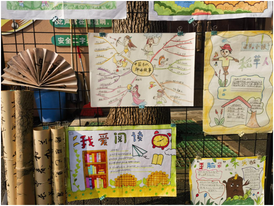 美輪美奐的連環(huán)畫更體現(xiàn)了孩子們的數(shù)學(xué)思維能力;學(xué)生們利用周末去尋找樹葉,測量樹葉的周長;還讓他們自制量角器和數(shù)位順序表;在制作的過程中,鍛煉了學(xué)生們的動(dòng)手能力和創(chuàng)造能力。