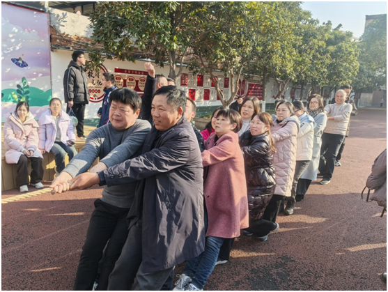在師生的一聲聲加油吶喊中,教師們盡情展現(xiàn)著自己的風(fēng)采。趣味運(yùn)動(dòng)會(huì)設(shè)置了拔河、托球接力賽和齊心協(xié)力等項(xiàng)目,每個(gè)項(xiàng)目都以團(tuán)隊(duì)配合為基礎(chǔ),充滿了挑戰(zhàn)性和趣味性。教師們分組參賽,互相配合,共同為團(tuán)隊(duì)的勝利而努力。