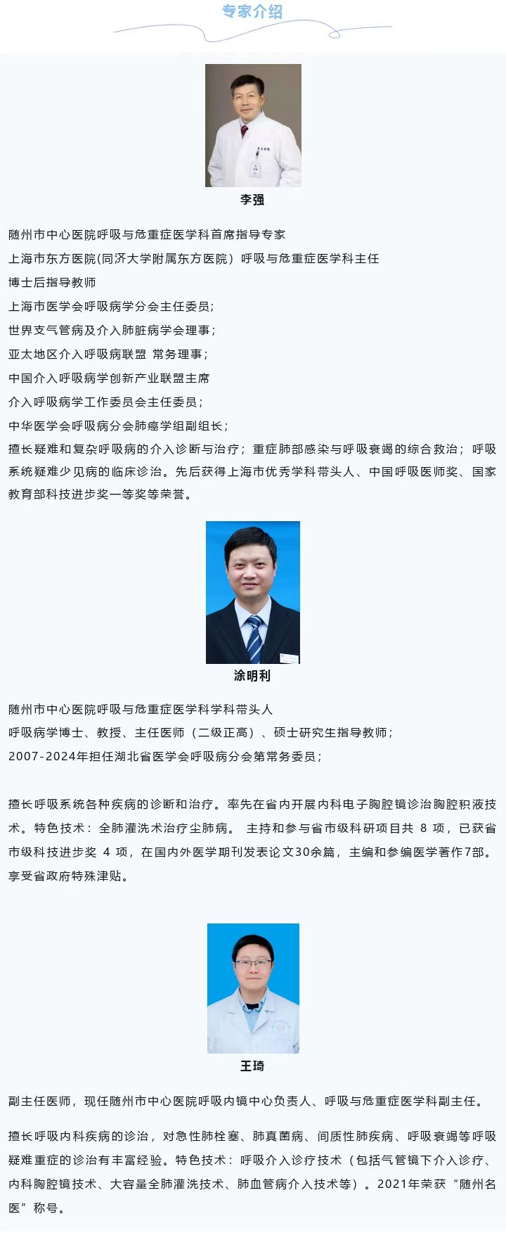 為了進一步加強呼吸與危重癥醫(yī)學科規(guī)范化建設(shè),提升呼吸系統(tǒng)疾病診療能力,整合優(yōu)質(zhì)醫(yī)療資源,改善患者就醫(yī)體驗,2025年1月15日,隨州市中心醫(yī)院呼吸綜合診療中心正式成立。聘請國內(nèi)著名呼吸病學專家,上海市東方醫(yī)院(同濟大學附屬東方醫(yī)院)李強教授作為首席指導專家,開展難治性呼吸道疾病鏡下治療等高精尖技術(shù),提升鄂北區(qū)域醫(yī)療服務(wù)水平。
