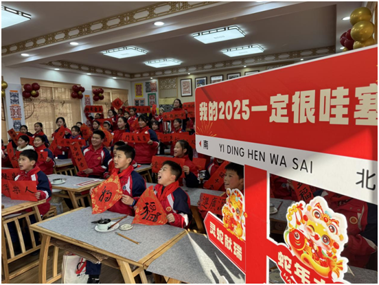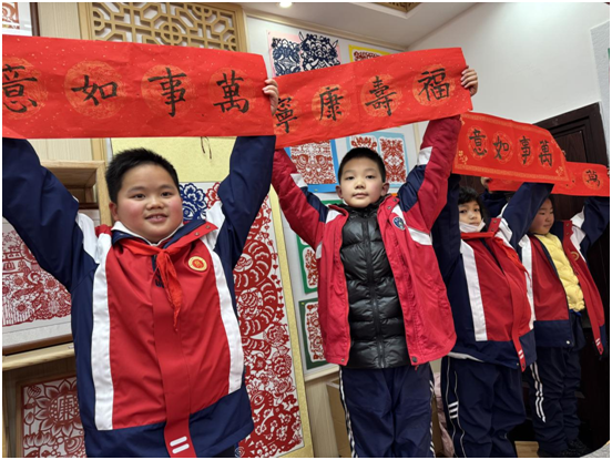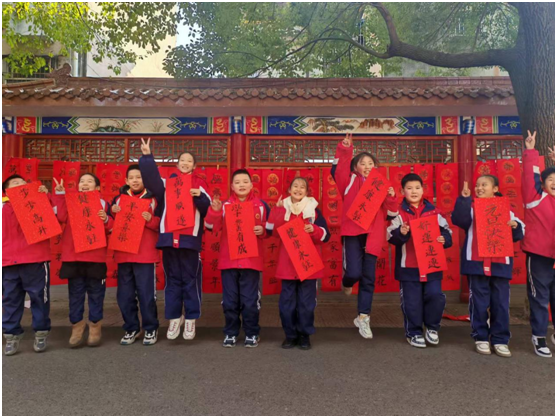 孩子們在書寫對聯(lián)中,展示了自己在軟筆書法上取得的階段性成果和進步,同時,在擔任家庭和學!拔哪笔拐叩倪^程中,對中華傳統(tǒng)文化春節(jié)習俗有了進一步了解和認識!包c橫豎撇捺”,傳承優(yōu)秀傳統(tǒng)文化;提筆寫春聯(lián),培植深厚的家國情懷;家校攜手共建共育,營造了良好的營商環(huán)境。