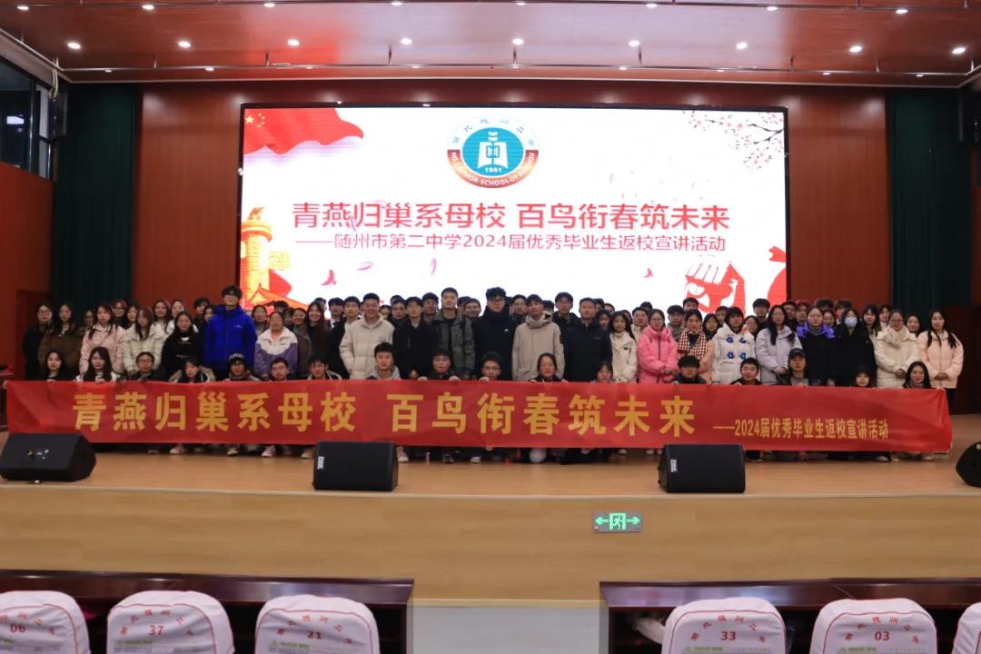隨州新聞網(wǎng)訊 (通訊員王波、張琳、樊辰龍)情歸母校,追憶三年努力拼搏歲月的美好;夢(mèng)啟二中,指引學(xué)弟學(xué)妹未來(lái)前行的方向。1月21日,隨州市第二中學(xué)舉行畢業(yè)生返校勵(lì)志宣講會(huì)。