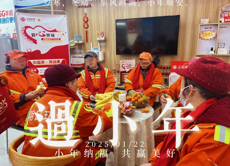 隨州新聞網(wǎng)訊(通訊員敖靜)小年至,年味濃,隨州聯(lián)通三家愛(ài)心驛站內(nèi)熱鬧非凡,一場(chǎng)以“情暖小年,愛(ài)滿驛站”為主題的暖心活動(dòng),正在聯(lián)通營(yíng)業(yè)廳內(nèi)溫情上演,為城市中忙碌的戶(hù)外工作者們送去了濃濃的節(jié)日關(guān)懷。