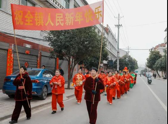 隨后,演出隊(duì)伍走上街頭,巡游表演。大家沿著幸福路、勝利路到朝陽街、水晶街,一路敲鑼打鼓,一路笑語歡歌。所到之處,鑼鼓喧天,人身鼎沸,氣氛熱烈。腰鼓隊(duì)、彩船隊(duì)、手球舞隊(duì)輪番上演,大家喜笑顏開,精神飽滿,用鏗鏘激越的鼓點(diǎn),熱忱奔放的節(jié)奏,舞出了幸福愿景,奏響了盛世歡歌。“祝全鎮(zhèn)人民新年快樂!”“給全鎮(zhèn)人民拜年!”美好的祝愿、精彩的演出,引得沿街商戶和過往群眾駐足欣賞,大家紛紛用手機(jī)記錄著這美好的瞬間。