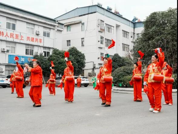 上午8時58分,文化活動正式上演。在政府機(jī)關(guān)大院,來自基層社區(qū)的大娘阿姨們,排著整齊的隊(duì)伍,穿著華麗的盛裝,隨著鏗鏘的鼓點(diǎn)翩翩起舞。有小丑的詼諧,有蓮船的喜慶,還有催人奮進(jìn)的鑼鼓聲聲。機(jī)關(guān)干部職工在融融春風(fēng)中與演出隊(duì)伍互致祝詞,空氣中到處洋溢著喜慶與祥和。