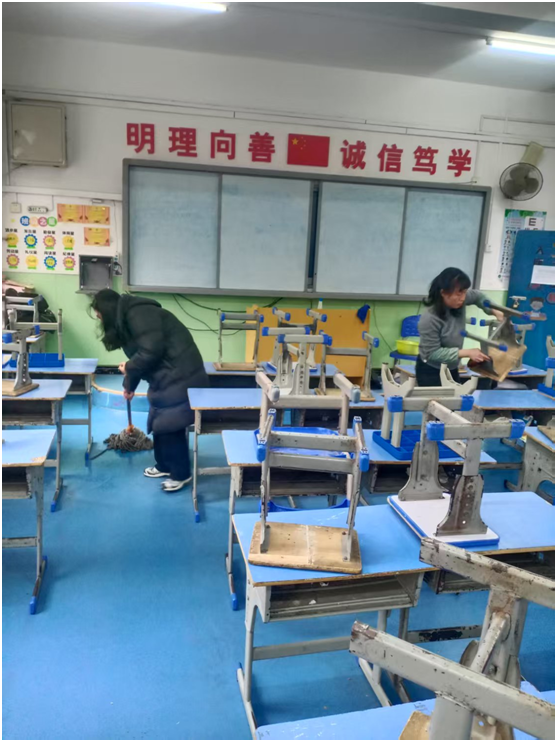會后,學校全體教師齊動手,共參與,全面整理各自教室、各辦公室、走廊衛(wèi)生。掃干凈,擺整齊,以全新的姿態(tài)迎接全體同學。全體工勤人員全面清理食堂衛(wèi)生,做好消毒消殺工作,提前做好米、面、油、蔬菜等物資儲備工作。對校園角角落落進行全面消毒,補齊所有教室已脫落的桌椅腳套,全面清除走道、教室天花板及墻壁已脫落的灰垢、掉皮等,以嶄新的、安全的、有序的校容校貌迎接新學期的到來。