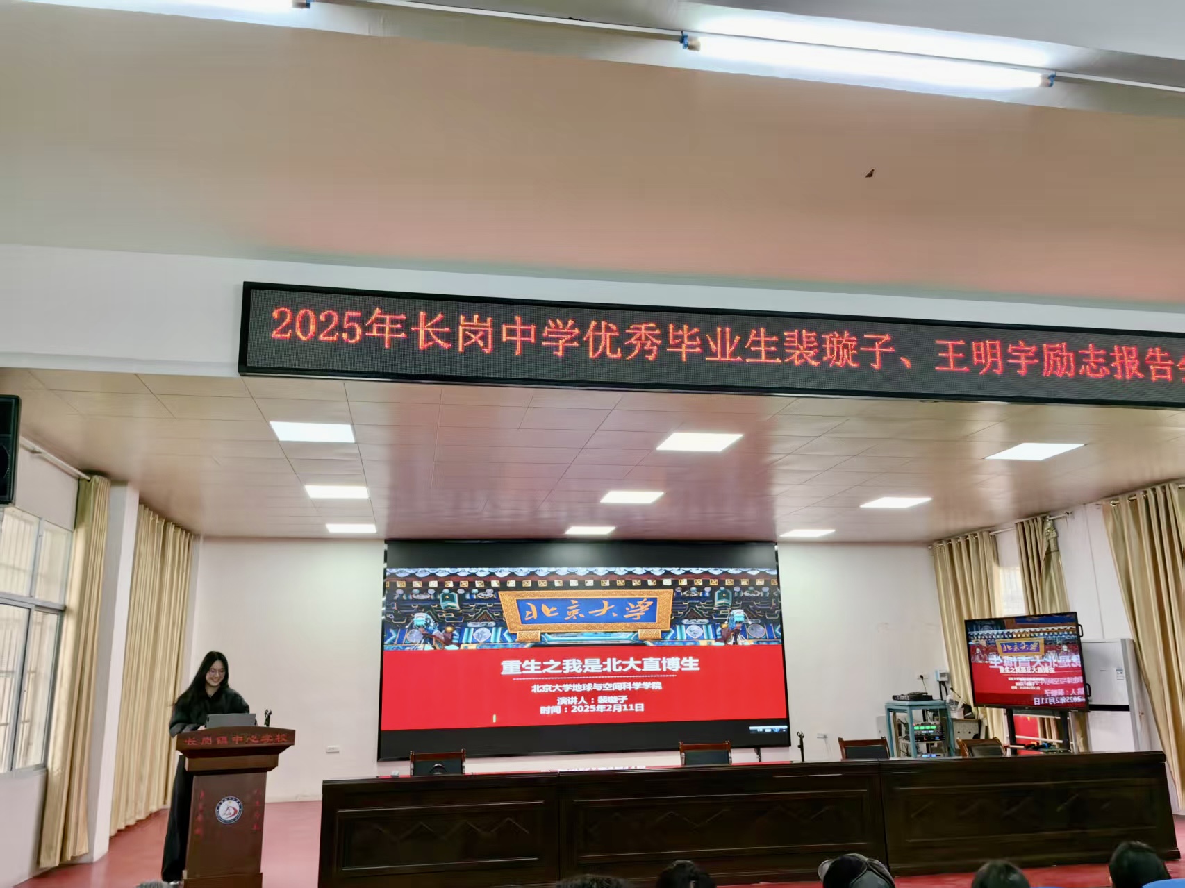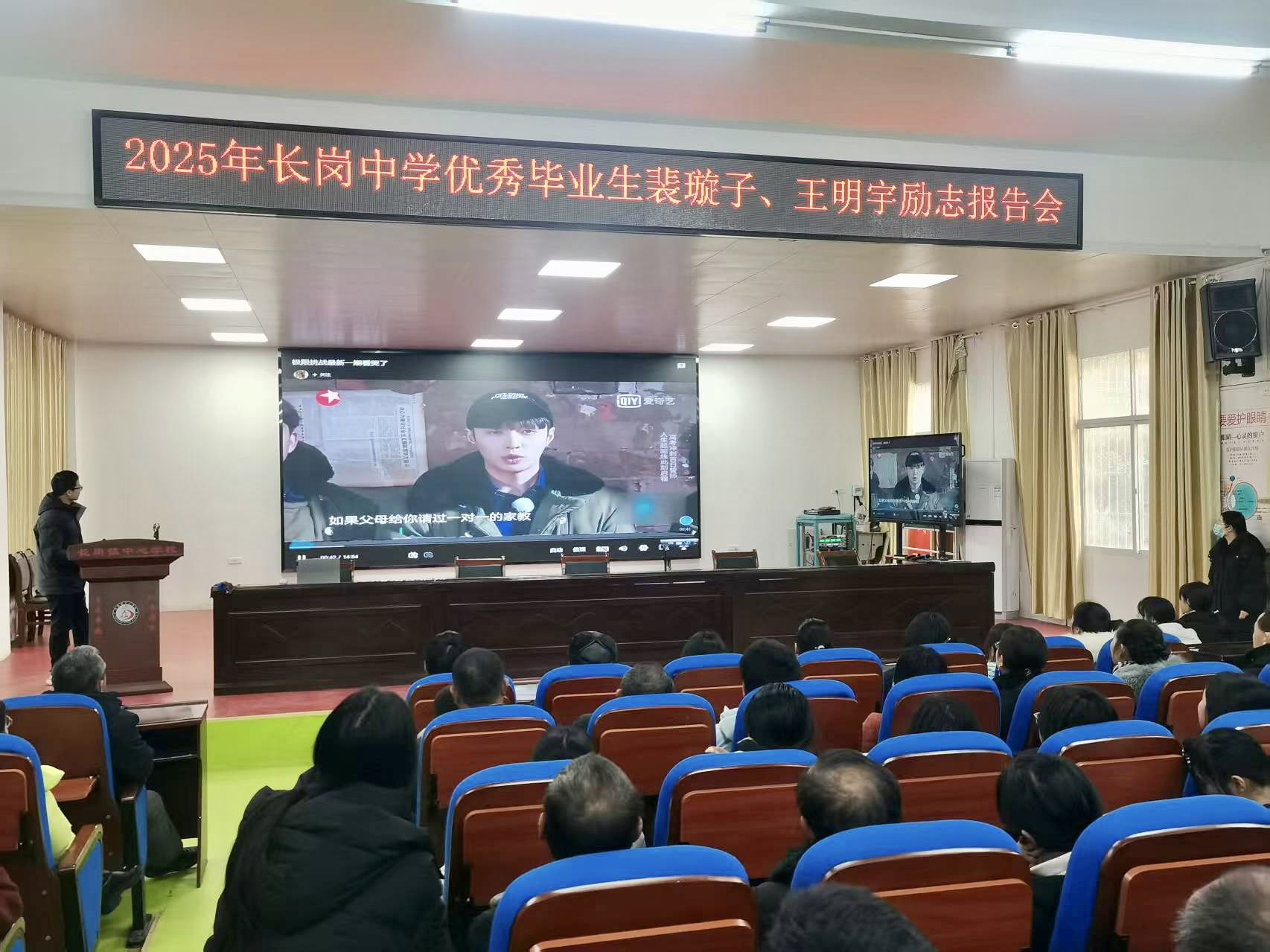 隨州新聞網(wǎng)訊 (通訊員涂天月)2月11日下午,優(yōu)秀畢業(yè)生勵(lì)志報(bào)告會(huì)暨家長會(huì)在長崗鎮(zhèn)中心學(xué)校階梯教室火熱開場(chǎng)。本次活動(dòng)特邀2017屆優(yōu)秀畢業(yè)生裴璇子、王明宇返校做勵(lì)志分享演講,助力九年級(jí)學(xué)子明確目標(biāo)、科學(xué)備考、激發(fā)學(xué)習(xí)信心和動(dòng)力。校長任勇兵、九年級(jí)全體師生及家長齊聚一堂,共同開啟這場(chǎng)意義非凡的成長之旅。