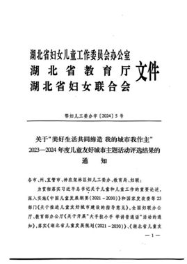 據(jù)悉,由省婦兒工委辦公室、省教育廳、省婦聯(lián)聯(lián)合開展的“美好生活共同締造 我的城市我作主”2023-2024年度兒童友好城市主題活動(dòng),經(jīng)過各地篩選推薦,省級(jí)專家評(píng)審,共評(píng)選出書信類作品:一等獎(jiǎng)20名、二等獎(jiǎng)50名、三等獎(jiǎng)130名;繪畫類作品:一等獎(jiǎng)20名、二等獎(jiǎng)40名、三等獎(jiǎng)60名。隨縣萬福店農(nóng)場(chǎng)中心小學(xué)學(xué)生廖鑫嵐的繪畫作品《美麗隨州》榮獲省級(jí)一等獎(jiǎng)。
