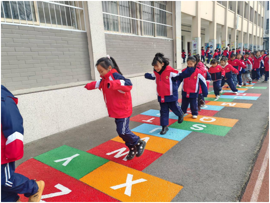 在這里,老師帶著孩子們跳長(zhǎng)繩、“鉆山洞”、擲沙包,在這里傳統(tǒng)游戲“跳房子”被賦予拼音格、五線譜、混合算、單雙跳等多種形式。寓教于樂、體智結(jié)合,孩子們身后有風(fēng),眼里有光,相比原來的課間十分鐘,他們玩得更嗨,也更有品質(zhì)。小小課間,為孩子們?nèi)姘l(fā)展賦予了新能量。
