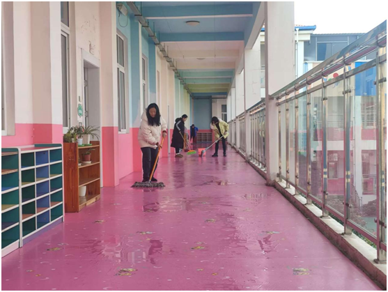 活動中,教職工們分工合作,手持掃帚、拖把、抹布等工具,對幼兒園的教室、走廊、操場等區(qū)域進行了徹底清掃。大家不怕臟、不怕累,認真清理每一處衛(wèi)生死角,確保幼兒園環(huán)境整潔有序。