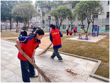 隨后,全體師生化身“清潔衛(wèi)士”,拿起掃帚、簸箕等清潔工具為福利院進(jìn)行大掃除。在大家的共同努力下,福利院的庭院變得干凈整潔、煥然一新。