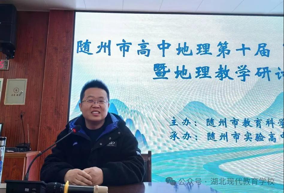 隨州新聞網(wǎng)訊 (通訊員孔祥聰)3月3日,由隨州市教育科學(xué)研究院主辦的隨州市高中地理第十屆“名師講堂”暨地理教學(xué)研討會在湖北現(xiàn)代教育學(xué)校舉行。本次活動市教科院特別邀請了中國地質(zhì)大學(xué)(武漢)教授侯林春到會指導(dǎo),市各區(qū)縣高中地理教師齊聚學(xué)校,通過專家講座的形式,共同探索新課程背景下的教學(xué)新路徑;顒尤逃墒薪炭圃焊咧械乩斫萄袉T劉禹主持。