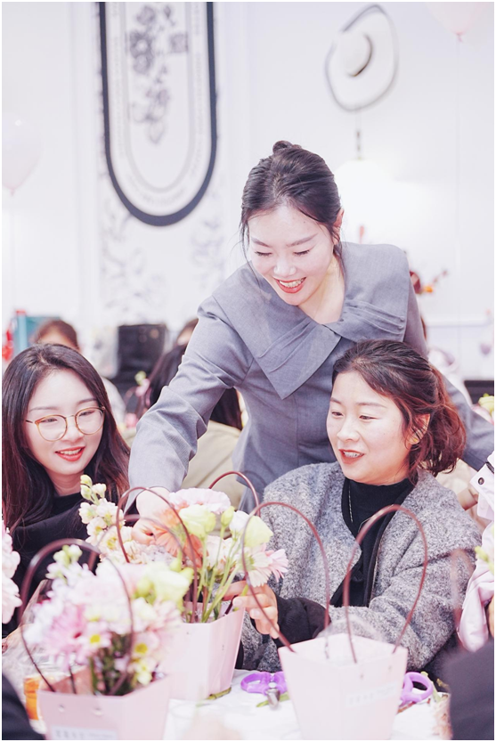 以花為禮,致獻(xiàn)芳華。活動伊始,花香四溢,笑語盈盈。資深花藝?yán)蠋熛ば臑榇蠹覀魇诨ㄋ嚨膴W秘,從花材的識別與選擇,到色彩的巧妙搭配,再到造型設(shè)計的獨(dú)特技巧,一一娓娓道來,并親自示范插花的每一個細(xì)致步驟。除了學(xué)習(xí)插花技巧,大家還結(jié)合康乃馨的溫馨、玫瑰的浪漫等花語文化,感受“一花一葉皆詩情”的東方美學(xué)。