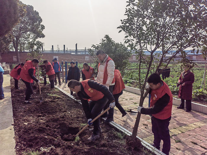 植樹現(xiàn)場(chǎng),志愿者們幾人一組,分工明確,干勁十足。有人揮鍬挖坑,有人扶正樹苗,有人培土填埋、有人提桶澆水,配合默契,大家都積極投身于植樹活動(dòng)中。參加植樹的黨員志愿者說,“我們要號(hào)召身邊人,牢固樹立綠色低碳意識(shí),堅(jiān)持不懈地植綠、護(hù)綠,為美麗鄉(xiāng)村增加更多的綠色,為低碳社會(huì)盡心出力!